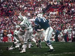 Last pic on the right is of HOFer DE Bubba Smith almost getting to Namath. Smith was on a mission to bury Namath. Smith did get the only sack on Namath in the game. In later years, Smith contended that the game was fixed, and you have to wonder when you look at a couple of key plays, both interceptions (2 of 4 total) thrown by Colt QB Earl Morral. HOFer Unitas had been injured that year, but he got into the game after Morral had thrown 3 picks. The offense picked up but it was too little and too late. Two years later, Unitas started Super Bowl V for the Colts, throwing a 75-yard touchdown before being injured in the second quarter. The Colts eventually won that game 16–13 over the Dallas Cowboys. Anyone remember that one? Great video about the game .......... https://www.youtube.com/watch?v=nysindmDhFg